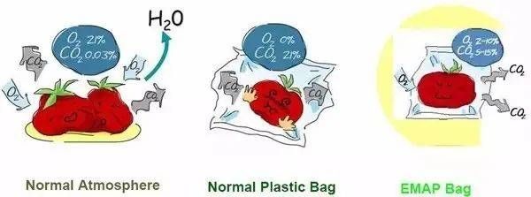 气调保鲜包装也适用于净菜保鲜。净菜又称切割果蔬、半处理加工果蔬,为迎合上班族的新兴食品加工产品,有安全、新鲜、营养、方便等特点,但经切割后易褐变。采用气调包装降低氧含量能最大限度延长货架期。例如美国的切丝莴苣以1%—3%的o2、5%—6%的co2和90%n2阻止褐变。气调保鲜包装还适用于去皮和切片的苹果、马铃薯、叶菜类蔬菜等果蔬保鲜。开发适合果蔬气调包装保鲜效果的包装设备是拓宽果蔬保鲜途径的关键。
