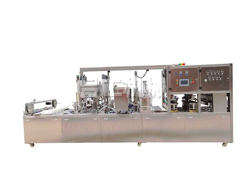 铝箔碗装灌装包装机适用于各种碗装产品的包装,能自动落盒、充填水、充填物料、紫外线消菌、光电定位、两次气动热封、自动剪切及整列出盒等功能。整机可采用编程逻辑控制器、气动控制元件、智能数显温度控制系统,具有封口强度高,密封性好,故障率低等特点,是企业自动化生产的良好产品,按照客户要求可以定做特殊规格的机器。